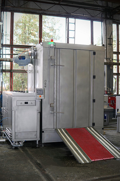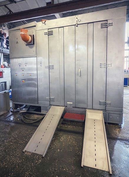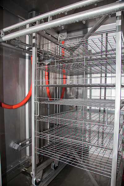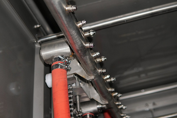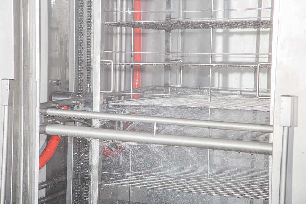 Предназначена для мойки рам, сырных контейнеров, хлебопекарных шпилек. Эффективно удаляет загрязнения после термической обработки, такие как жир, нагар, копоть. Высокое качество мойки достигается за счет экспозиции моющего раствора, подаваемого через форсунки под высоким давлением. В ходе процесса мойки и ополаскивания рамка движется вверх и вниз, тем самым достигается максимальная степень промывания всех труднодоступных поверхностей.