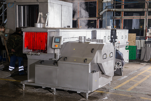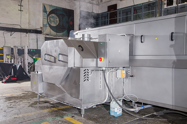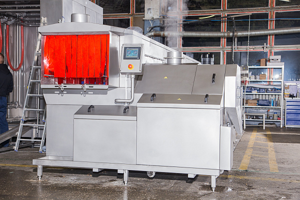 Предназначена для мойки ящиков для перевозки живой птицы и другой производственной тары посредством циркулирующего моющего раствора, подающегося под высоким давлением через форсунки. В стандартном исполнении машина мойки состоит из секции мойки и ополаскивания. Может комплектоваться дополнительными модулями и опциями в зависимости от потребности производства.