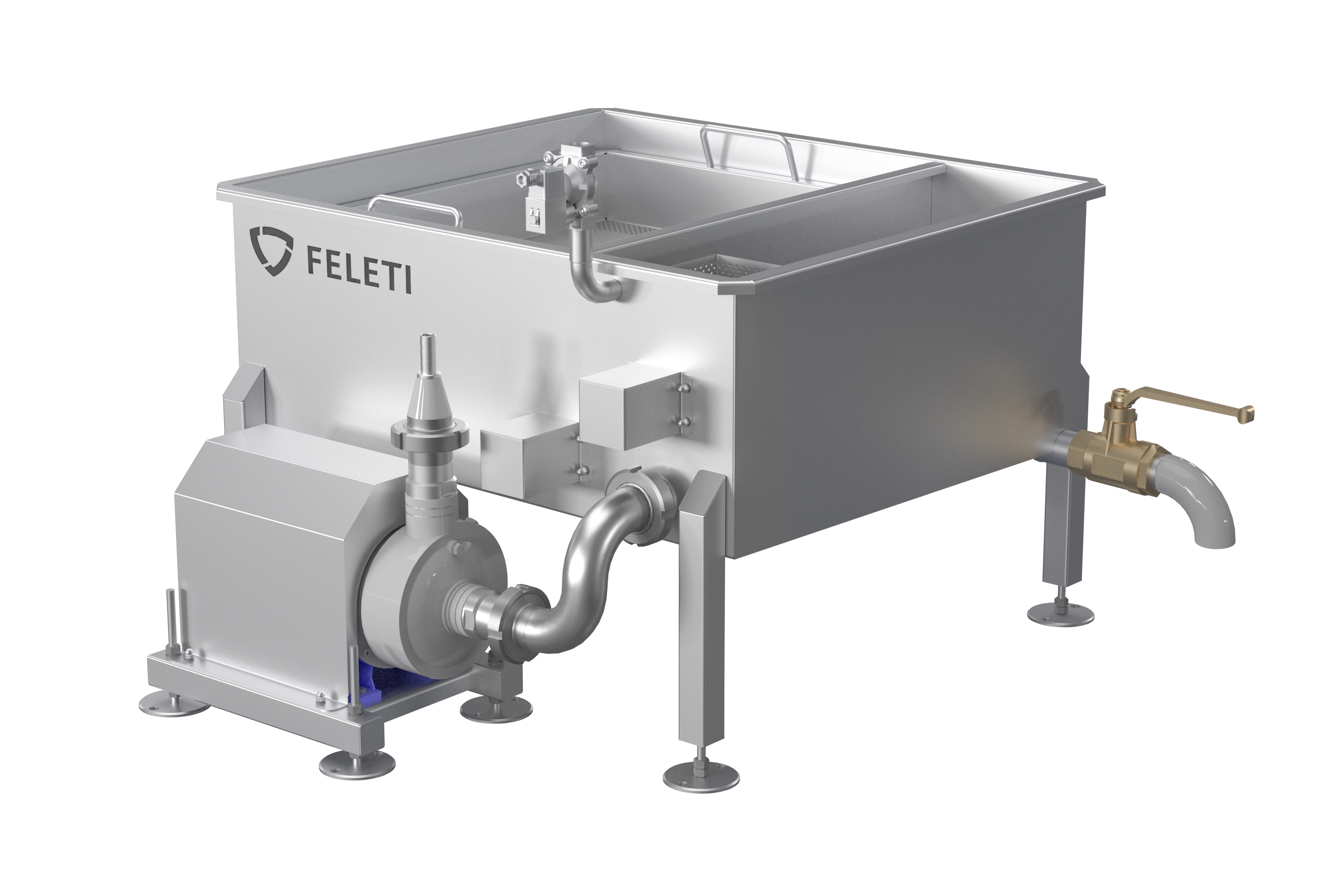 выполнена из высококачественной нержавеющей стали AISI. Наружные поверхности дробеструены, поверхности, соприкасающиеся с продуктом отшлифованы.