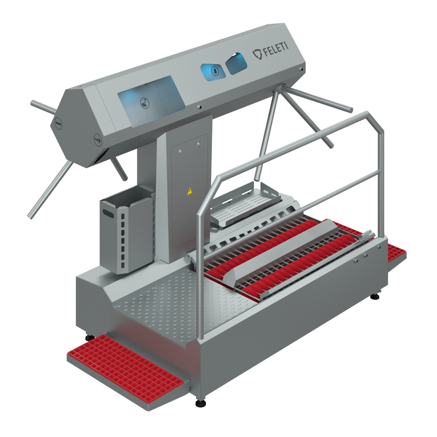 в целях безопасности в машине предусмотрен защитный кожух горловины, предохраняющий обслуживающий персонал и устраняющий риск разбрызгивания фарша за рабочую зону. Также на кожухе предусмотрена система блокировки открытия во время работы.