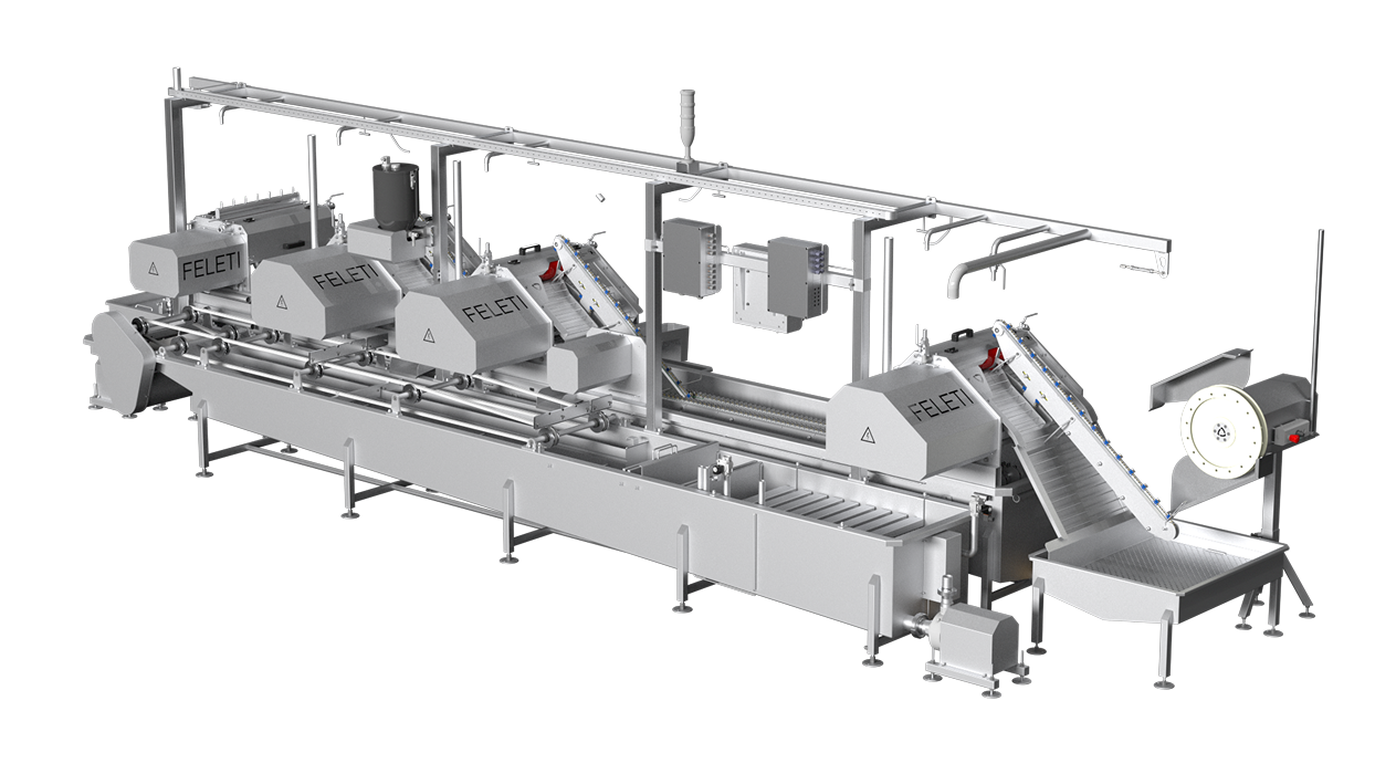 в машине установлены трубки для подачи воды, которые обеспечивают распыление воды между вальцами, что предупреждает залипание и повреждение черевы во время обработки.