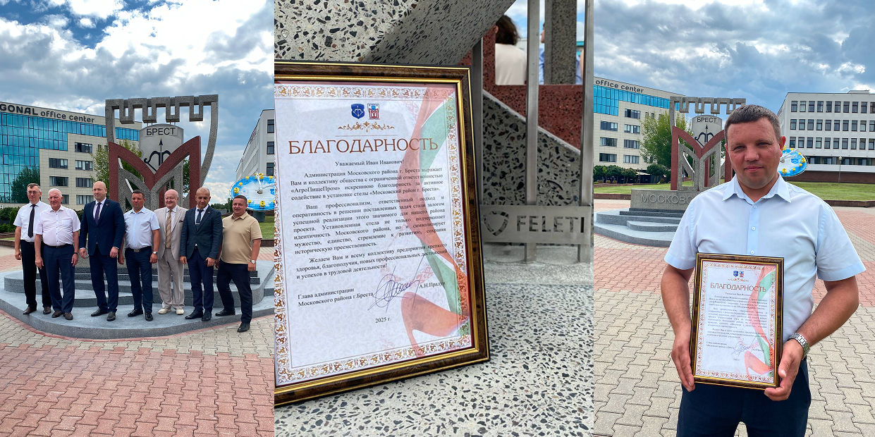 Благодарность вручена за активное содействие в установке стелы «Московский район г. Бреста». Этот проект стал важным символом, подчеркивающим идентичность района, его историю, мужество, единство и стремление к поступательному развитию.